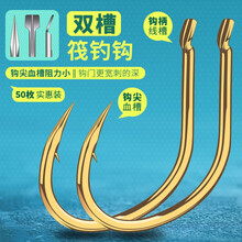 瑞美人双槽筏钓钩线槽血槽尖筏钓鱼钩翘嘴钩挂玉米泥鳅钩散装鱼钩 金色【双槽筏钓钩-50枚】11号