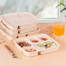 优奥 天纯玉米淀粉餐具可降解五格一次性饭盒餐盒50只装1250ml带盖外卖快餐打包盒