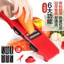 红凡 多功能切菜器土豆丝切丝器厨房刨丝器擦丝器家用黄瓜切片削皮擦菜萝卜丝磨蒜工具带护手 红色款/无盒款