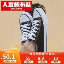 人本2021春秋平底板鞋经典帆布鞋姜黄百搭布鞋潮牌港风休闲男鞋子 黑色 男41