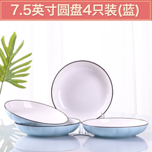 纯色日式碗碟套装家用陶瓷吃饭盘子菜盘汤碗大号单个餐具北欧简约 7.5英寸圆盘4个(南瓜蓝)