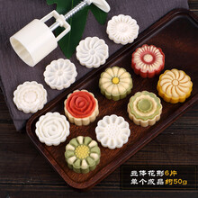 livos 冰皮月饼模具手压式50克75克100克卡通家用做南瓜饼绿豆糕的工具 【花形6片装】单个成品约50g 1
