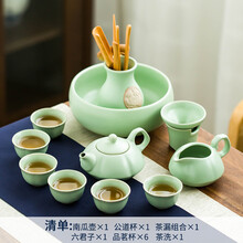 瓷牌茗 汝窑茶具套装仿汝瓷开片陶瓷功夫茶杯盖碗办公泡茶壶家用整套 汝窑《南瓜》12件套