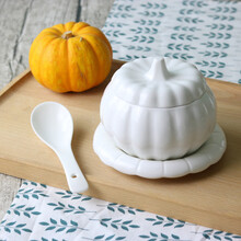 雅派陶瓷燕窝炖盅纯白色创意南瓜汤盅厨房蒸蛋碗炖燕窝专用补品参盅酒店例汤甜品碗带盖炖罐盅可定制LOGO 中号南瓜盅三件套 盅 碟 勺
