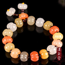 新疆玉乌尔禾戈壁玉多彩宝石光冰种金丝玉南瓜男女款手串手链