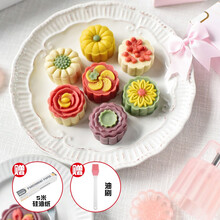 学厨月饼模具 冰皮月饼绿豆糕南瓜饼糕点压花模具50克手压式8立体花片烘焙工具