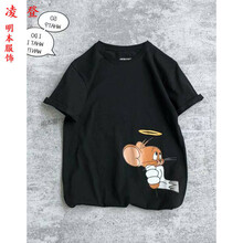 凌登 情侣装夏装套装2021新款猫和老鼠联名短袖T恤小众设计感男女学生班服定制宽松半袖 黑色杰瑞 M【送运费险】【新店开业啦!开业啦!】【一件也是批发价】【不要问我为什么;厂长是我表哥】@【点击进入店铺】【一件也是批发价】