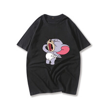 2020年鼠年本命年T恤女宽松韩版学生新款猫和老鼠合作款泰菲情侣装鼠纪念版纯棉卡通内搭ins 黑短袖T恤 浅色小杰瑞打哈欠 S