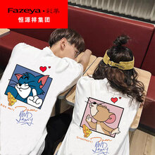 恒源祥彩羊猫和老鼠法式情侣装夏装小众设计感2021新款夏季韩版短袖t恤高端男装 汤姆白色(男)+杰瑞白色(女) S/S