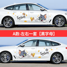 卡维妲(KAWEIDA)猫和老鼠车贴汤姆杰瑞创意个性趣味车身装饰贴画划痕遮挡汽车贴纸 A款-左右一套【黑色字母】