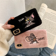 闻度鲜 秋冬毛绒刺绣卡通猫和老鼠适用8plus苹果x手机壳XS Max/XR/iPhoneX/7p/ XR 6.1寸 粉毛绒金框 杰瑞鼠