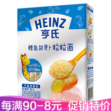 亨氏(Heinz)婴儿面条 粒粒面 颗粒面儿童金装智多多宝宝辅食不添加食盐 鳕鱼胡萝卜粒粒面320g【辅食每满90-8元】【组套赠湿巾】促销清仓,厂家授权供货正品保证