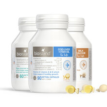 佰澳朗德Bio island 澳洲进口 儿童 婴幼儿补钙 宝宝液体钙 婴儿营养0-6个月 鳕鱼肝油+海藻油dha+乳钙软胶囊三剑客 各一瓶