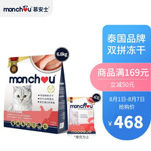 慕安士(Monchou)泰国品牌 鸡肉深海鱼配方冻干猫粮6.8kg 三文鱼蛋黄冻干 无诱食剂 增肥发腮 猫咪主粮【满169减50元!赠试吃装!】大容量鸡肉深海鱼双拼冻干猫粮6.8kg,安全无添加!肉质肥嫩、促进新陈代谢!泰国进口,6种口味混合装猫罐头