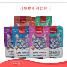 Wanpy顽皮猫罐头 妙鲜封包湿粮增肥发腮营养猫咪零食80g*15袋鸡肉虾仁鳕鱼三文鱼幼猫成猫湿粮 80g*15袋/盒混合口味