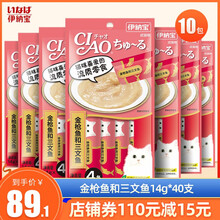 【到手63元40条】伊纳宝日本啾噜猫条妙好肉鲜包肉泥鲜湿粮包流质成猫幼猫零食猫条12g/14g*4条 金枪鱼和三文鱼 10包