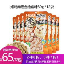 伊纳宝猫饼干妙好CIAO烤海鲜零食 烤鸡肉卷烤鱼多多烧烤味夹心小鱼干猫咪磨牙洁齿零 鸡肉卷 金枪鱼味30g*12袋