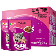 伟嘉妙鲜包 宠物猫粮猫湿粮 幼猫妙鲜包 海洋鱼味 牛肉味 金枪鱼味85g*12整盒装 伟嘉幼猫牛肉味85g*12袋/整盒 幼猫2-12个月