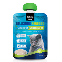 【自营时效】顽皮海鲜王国鲜肉羹顽皮猫猫罐头猫湿粮宠物猫零食幼猫成猫猫咪零食猫增肥发腮猫咪流质罐头 白身金枪鱼+三文鱼 90g*4包