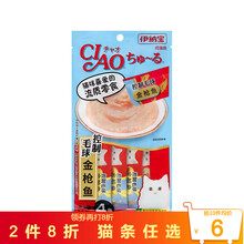 Ciao伊纳宝猫条日本品牌猫零食妙好啾噜系列 成幼猫湿粮猫条 金枪鱼控制毛球配方【成猫】(14g×4)
