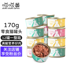 喵喵酱(MIAOMIAOJIANG)猫罐头湿粮罐头幼猫猫咪营养猫零食大肉块170g /罐12罐 /箱 金枪鱼+虾170g*12罐/箱