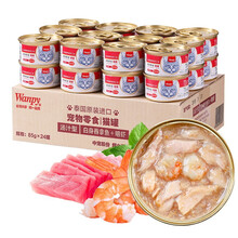 泰国进口 顽皮(Wanpy)猫罐头85g*24罐 白身吞拿鱼+明虾罐头(汤汁型) 成幼猫宠物猫咪零食湿粮