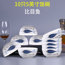 10只家用吃饭景德镇陶瓷碗4.5英寸组合套装餐具陶瓷饭碗小瓷碗 10个5英寸大饭碗+10筷-比目鱼