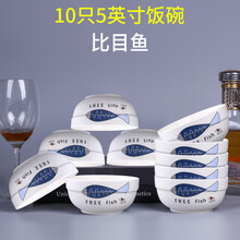 许索 10只家用吃饭景德镇陶瓷碗4.5英寸组合套装餐具陶瓷饭碗小瓷碗 10个5英寸大饭碗送10筷-比目鱼