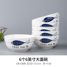 泡面碗陶瓷 6英寸家用吃面碗 大碗泡面碗大号碗大汤碗陶瓷餐具组合饭碗瓷碗 比目鱼 6个6英寸面碗