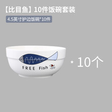 景德镇家用米饭碗陶瓷碗单个吃饭碗餐具碗碟套装碗盘小汤碗 10个4.5英寸碗 比目鱼