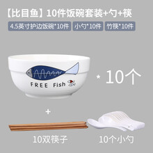 景德镇家用米饭碗陶瓷碗单个吃饭碗餐具碗碟套装碗盘小汤碗 10碗10勺10筷 4.5英寸比目鱼