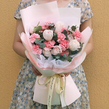 爱清清绍兴鲜花速递同城百合康乃馨花束越城柯桥上虞诸暨嵊州生日配送花 19朵粉佳人 粉康混搭-比目鱼