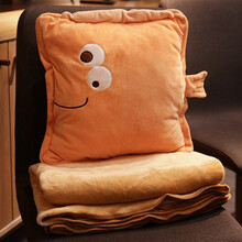 憨憨龙抱枕被子两用多功能可爱三合一珊瑚绒毯子午睡小枕头汽车载靠垫 海洋系列-比目鱼 抱枕40cm(内置毯子1x1.7米)