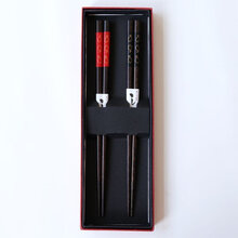 筷子,两双装实木礼品盒结婚回礼筷子情侣款一对分餐筷日式尖头家用 桔黑 比目鱼
