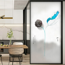 石斑鱼定制中式素雅荷花窗户玻璃贴纸卫生间透光不透明防透厕所磨砂浴室遮光玻璃贴膜防窥 B款磨砂静电 120cm高*60cm宽