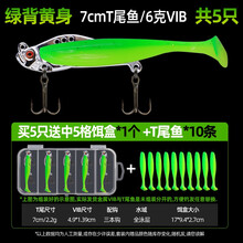 临池幕鱼远投vib铁板亮片路亚软饵T尾软虫假饵翘嘴海钓鲈鱼铅头钩淡水套装 【7cm】T尾绿背黄身+【6g】vib