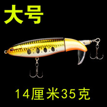 拖拉机 浮水铅笔路亚饵水面系撞水花淡水海钓远投翘嘴鲈鱼黑鱼鱤鱼军鱼鲅鱼梭鱼海鲈鱼石斑鱼神器假鱼饵 大号:14厘米35克 斑点金甲