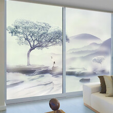 石斑鱼定制磨砂玻璃贴山水画中式装饰窗贴家用玻璃贴纸窗户玻璃贴膜卫生间客厅浴室门贴厨房 透光不透明 B款 180cm高*80cm宽