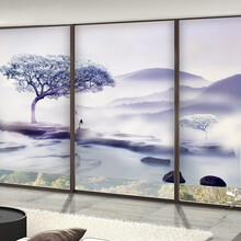 石斑鱼定制磨砂玻璃贴山水画中式装饰窗贴家用玻璃贴纸窗户玻璃贴膜卫生间客厅浴室门贴厨房 透光不透明 可定制 40cm高*30cm宽【进口设备环保墨水】【支持定制】【定制拍前必须联系客服告知宽高尺寸计算价格后再下单】