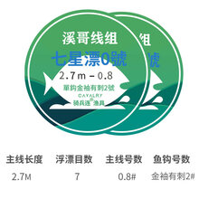 走钓小鱼鱼钩钓白条溪流石斑线组高灵敏度鱼漂七星漂一线通钩套装 七星漂线组2.7米金袖2号钩(2付装) 0.8号