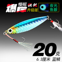 暴岸截口铁板路亚饵假饵金属亮片小铁板淡水鲈鱼翘嘴桂鱼海钓岸抛海鲈鱼马鲛鱼鲅鱼石斑鱼梭鱼黑头鱼鲶鱼 6.3厘米20克 蓝背暴岸铁板10克15克20克多色可选前置铁板单钩后置血槽白镍三本钩海钓淡水通用