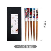 秋刀鱼日式木筷子家用无蜡楠竹筷家庭公筷套装 竹制-猫【礼盒】