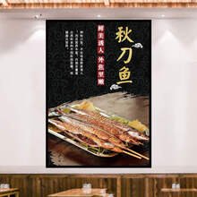 海报广告招牌墙纸墙贴创意烧烤店装饰背景墙面图片海报贴画小龙虾饭店铺橱窗玻璃门贴纸 004秋刀鱼 中