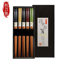 尖筷子 日式竹筷木筷子尖头家用实木5双装印花筷家庭用礼盒套装 印花筷--秋刀鱼(5双装)