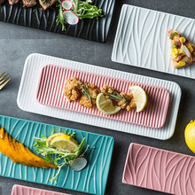 TENGTOO 点心盘小吃盘秋刀鱼长盘陶瓷烧烤寿司北欧盘子长方形长条盘西餐盘创意日式创意 (尺寸较小)条纹款小号(白色)(规格见图二)