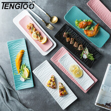 TENGTOO 点心盘小吃盘秋刀鱼长盘陶瓷烧烤寿司北欧盘子长方形长条盘西餐盘创意日式创意 (尺寸较小)条纹款小号(黑色)(规格见图二)