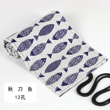 铅笔笔帘36支48支72孔彩铅卷笔袋帆布卷帘素描可爱学生美术收纳袋 白色 【秋刀鱼-12孔