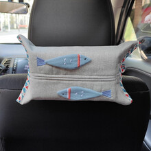 车载纸巾盒桌面布艺纸巾袋抽纸套墙挂面巾纸防尘套 车载纸巾盒-蓝色秋刀鱼 均码