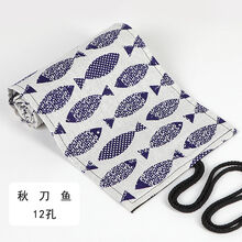 手工帆布笔帘12/24/36/48/72孔大容量卷笔袋素描彩铅绘画专用文具 秋刀鱼 12孔