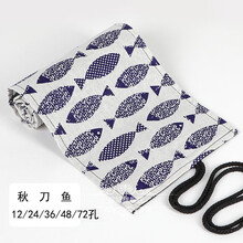 笔帘卷笔袋铅笔笔帘24/36/48/72孔彩铅卷笔收纳袋大容量帆布卷帘素描可爱创意学生美术收纳文具袋 秋刀鱼 12孔